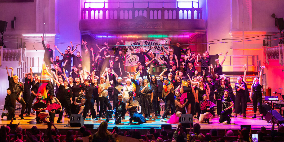 In the last year, The Pink Singers celebrated their 40th anniversary and their inspiring story of queer singing and activism has been the focus of a podcast series Sing It Pink (featured in the Radio Times, The Guardian and on BBC Radio 6 Music). With the support of the National Lottery Heritage Fund, the choir’s archives are being opened up to the public for the first time at the Bishopsgate Institute. The Pink Singers perform regularly at London’s Cadogan Hall, where they recently premiered a newly commissioned piece, Homemade Musical Hope Machine by composer Simon Pearson, drawing on lyrics inspired by the choir’s archives. Recent highlights also include performances at St Pancras Station to raise funds for the Terrence Higgins Trust, at Charlton Athletic as part of Football Against Homophobia, the Natural History Museum, British Summer Time Festival, Camden Pride, and Hand in Hand choir festival of LGBTQ+ choirs in Bristol. They also marched at Pride in London, featured in the Transport for London Pride campaign, and collaborated with Ballet in the Park – an LGBTQ+ open access ballet community. Their 40th anniversary gala event included the premiere screening of a documentary about the choir, A Magical Journey of Queerness.