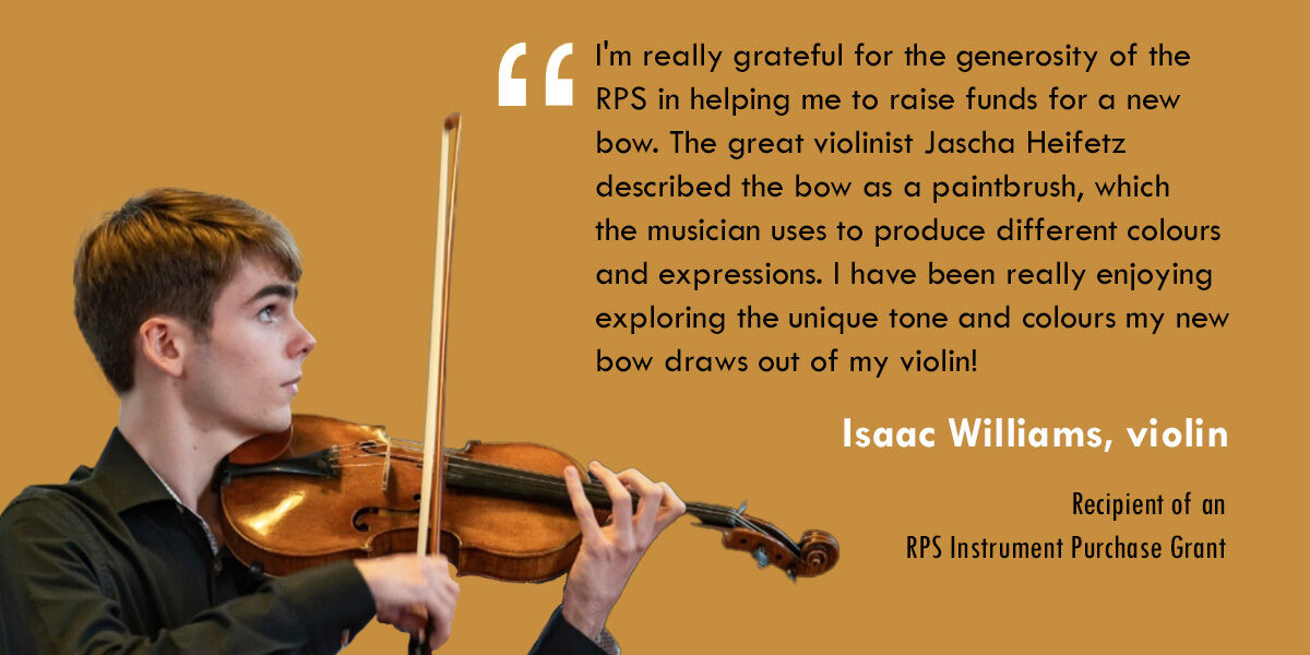 Every year, the Instrument Purchase Grants remain our most over-subscribed fund. We would dearly like to enable more young people acquire the instrument they really need to progress. If you would like to help us to help more young musicians, please contact us or find out more about supporting the RPS here.