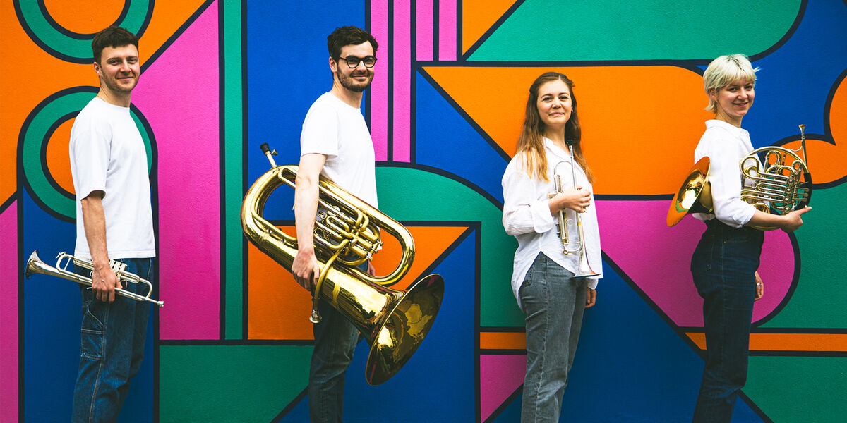The members of Quartet Menine are Kaitlin Wild and Adam Wood (trumpets), Zoë Tweed (horn) and Adam Collins (tuba).