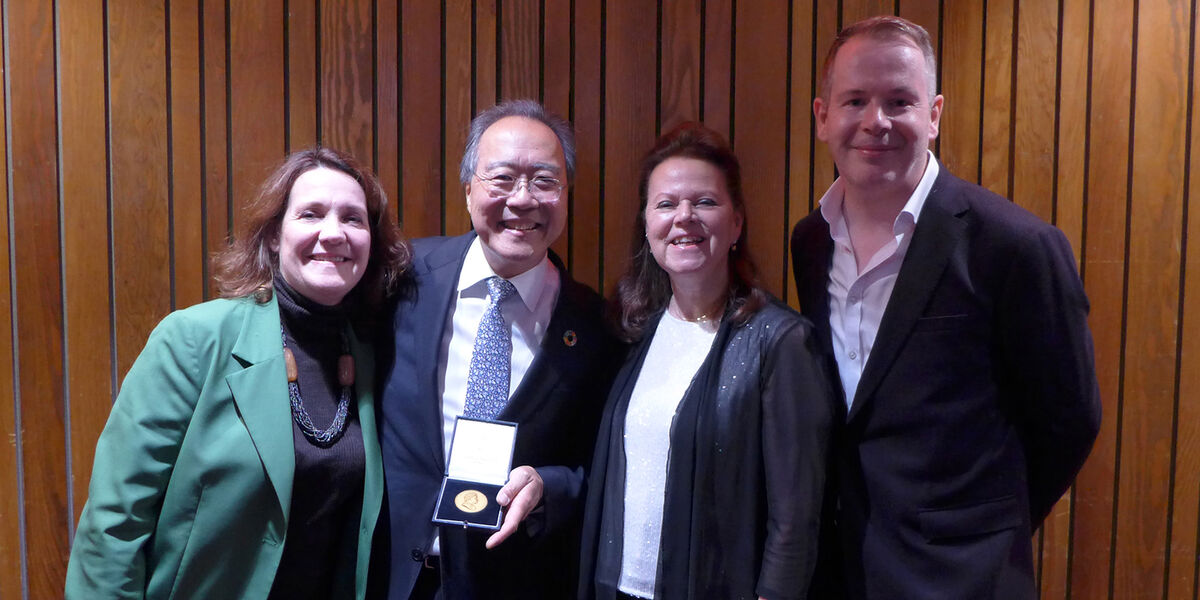 You set a gold standard in your musicianship. You are a generous collaborator and commissioner, lowering drawbridges to classical music, presenting it as a fresh, playful force. You’re an exemplar to your fellow musicians, demonstrating how music can be a passport to limitless horizons. This is evident across your extraordinary discography of more than a hundred albums, charting so much terrain. It’s also at the heart of your intrepid ventures like the Silkroad collective, the Bach Project, and lately Our Common Nature, each distinctly connecting cultures and communities through music. In endeavours like these, and your dedicated humanitarian work with the United Nations and beyond, we see music as a catalyst for conversation and understanding.
